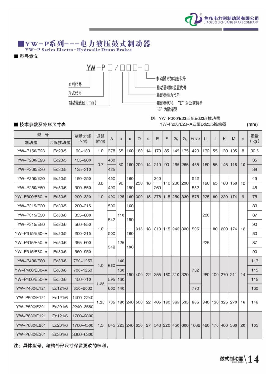 YW-P系列---電力液壓鼓式制動(dòng)器